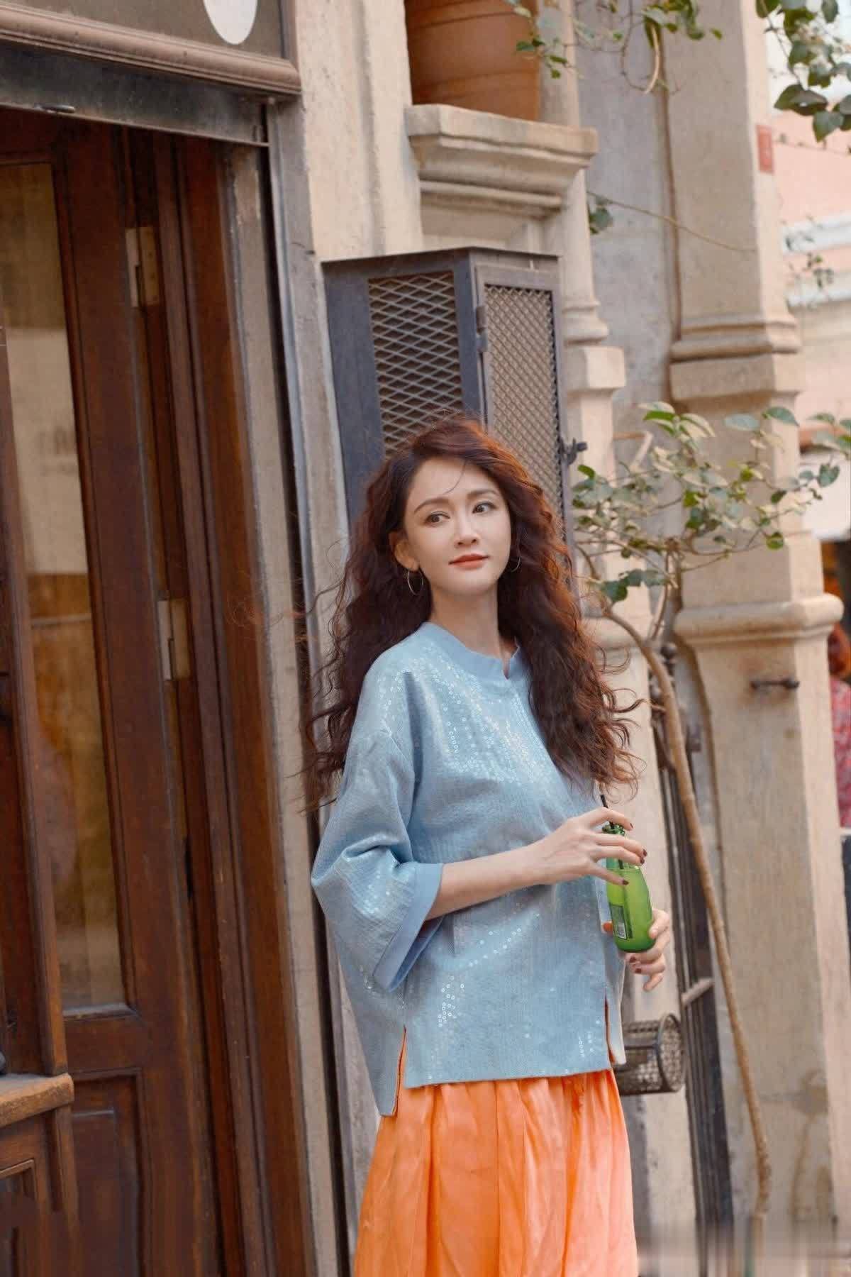 穿搭更是把新中式风穿到了骨子里,上身选清爽的蓝色新中式上衣,立领+精致盘扣,自带古典韵味,面料轻薄挺括,简约又有质感,没有繁琐装饰,高级感拉满。下装搭一条橘色缎面半身裙,冷暖的撞色大胆又和谐,再通过半身裙的高腰版型拉高腰线,裙摆灵动飘逸,走路自带氛围感,能够完美优化身材比例,温柔又显活力。